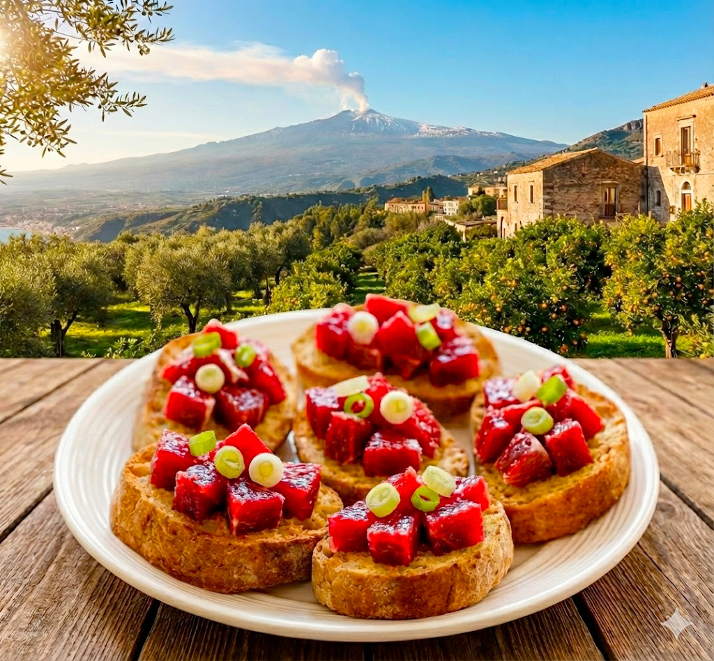 Accompagner les Brusqetta avec un vin rouge ou blanc de Sicilien pour un voyage en Sicile le temps de l’appéro.