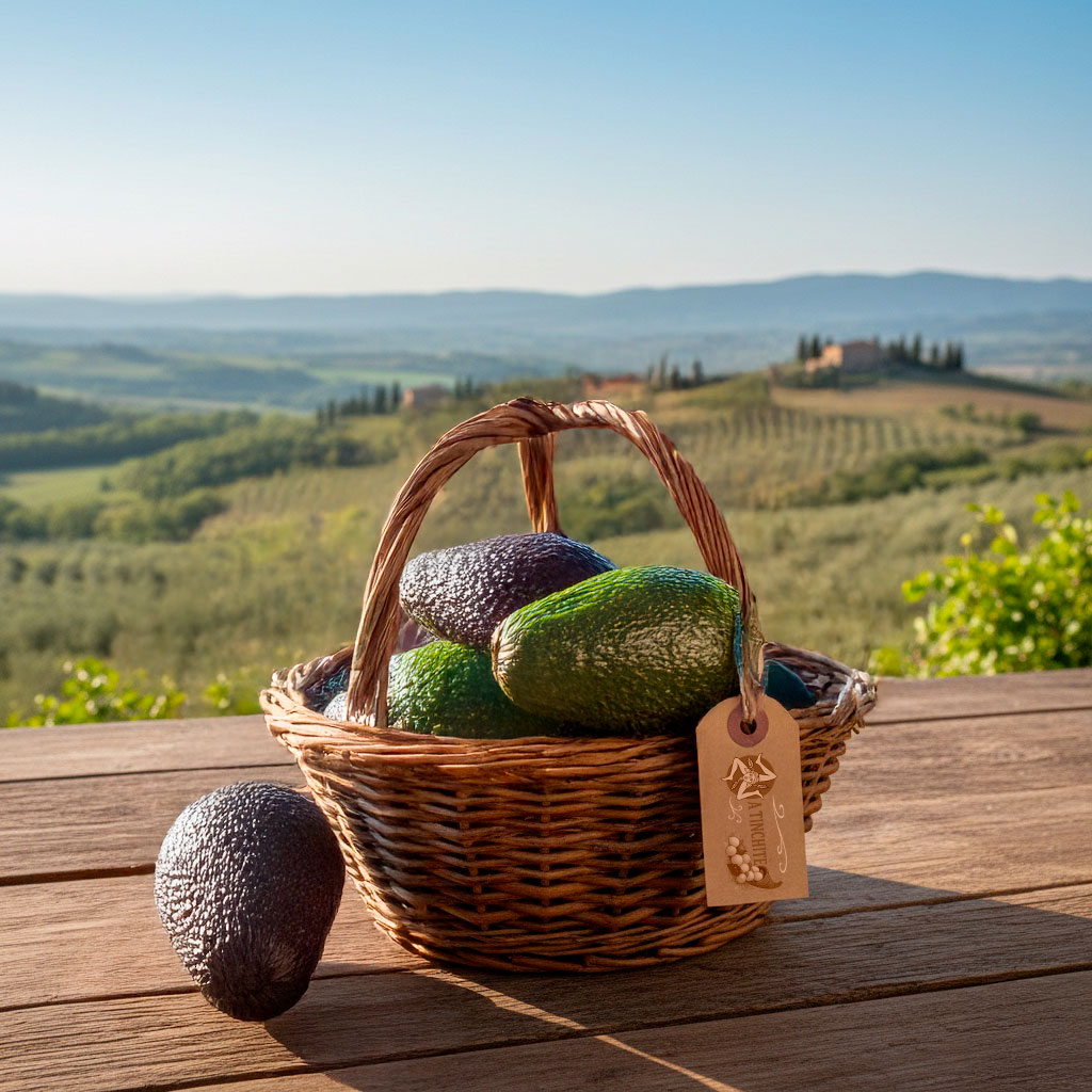 L’avocat Hass est un fruit en forme de poire caractérisé par une peau rugueuse, d’un vert foncé presque noir.