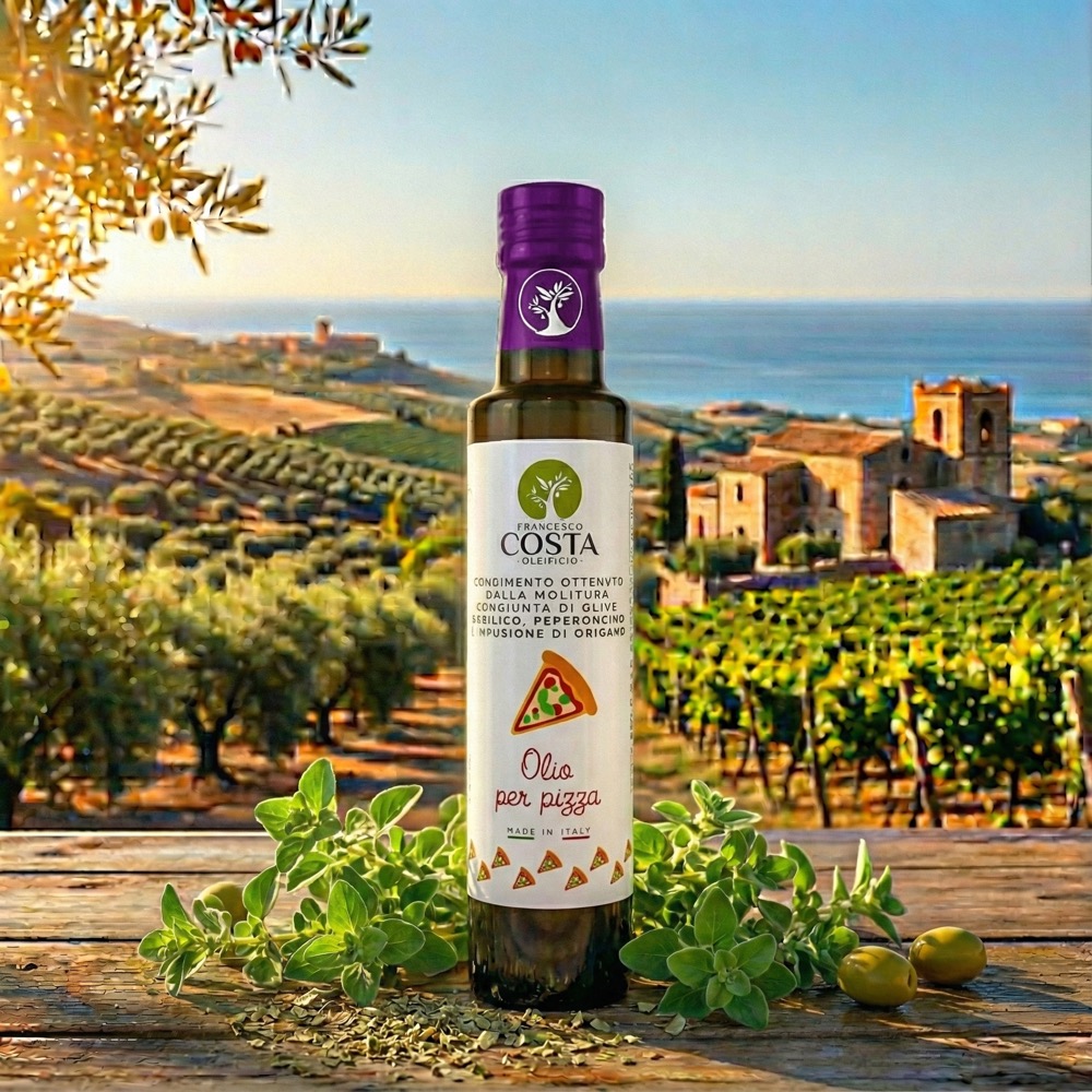 Obtenue en broyant des olives, du basilic frais et une pointe de piment, infusée d’origan sicilien et de piment séché. La pizza est le symbole de l’excellence culinaire italienne à travers le monde. Impossible de résister à l’envie de lui dédier une huile, à elle et à ses innombrables variantes et recettes. Idéale pour sublimer toutes vos pizzas, notamment la pizza rossa. Elle est également délicieuse dans une salade caprese et une sauce tomate.
