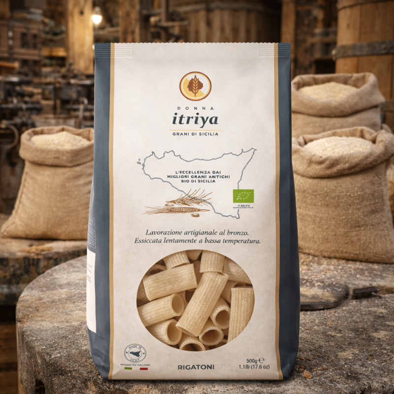La gamme Grani Antichi Donna Itriya est élaborée à partir de blés anciens siciliens biologiques, Russello et Perciasacchi, cultivés naturellement sans pesticides ni engrais intensifs. Ces céréales indigènes, moins riches en gluten que les blés modernes, sont plus digestes, légères et assimilables, réduisant les risques d’intolérances. Leur indice glycémique bas en fait un choix adapté aux régimes équilibrés. La semoule qui en résulte, 100 % sicilienne, est travaillée artisanalement pour offrir goût et parfum uniques, dans une quête constante d’excellence.